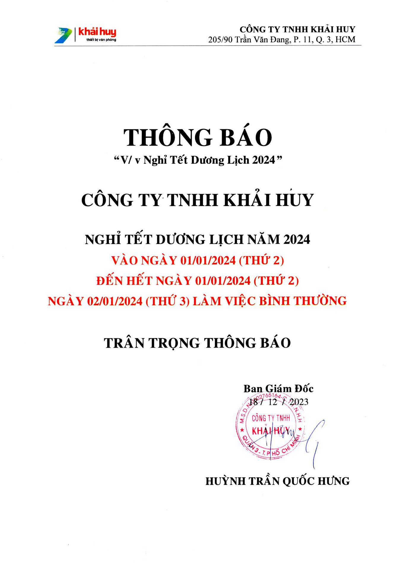 THÔNG BÁO NGHỈ TẾT DƯƠNG LỊCH 2024